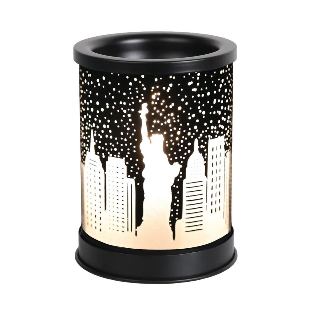 Add a touch of urban style to your home with the Aroma New York Cylinder Electric Wax Melt Warmer. Featuring a bold New York skyline design, this sleek cylinder warmer creates a warm ambient glow as light shines through the city silhouette.