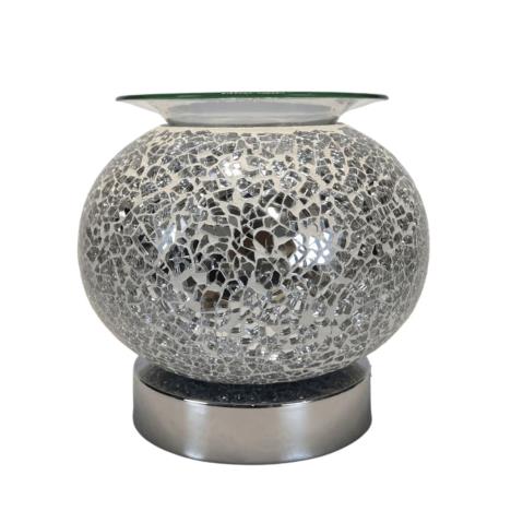 An attractive sparkly wax burner featuring hexagon glass shapes with sparkling mirror designs.